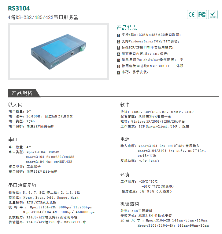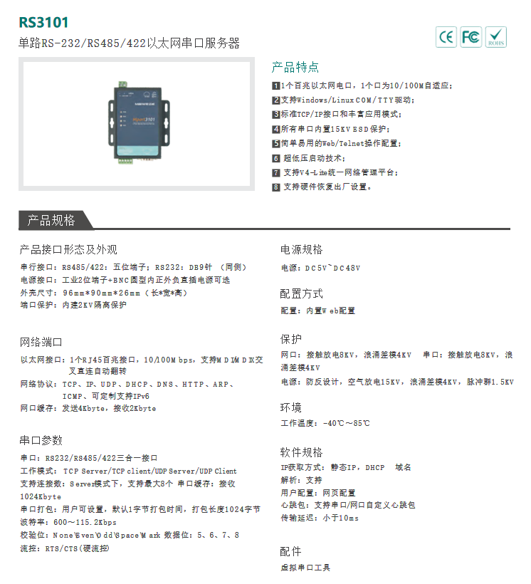 isnSystem RS232/RS485转以太网服务器