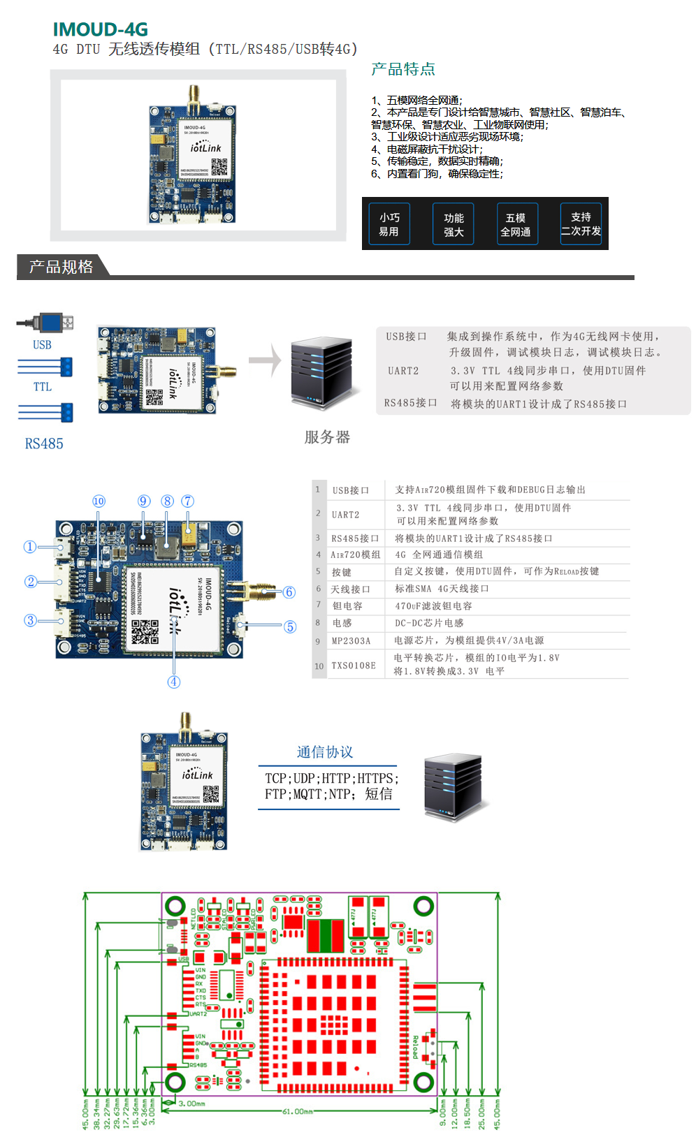 IMOUD-4G 无线DTU数据透传模组