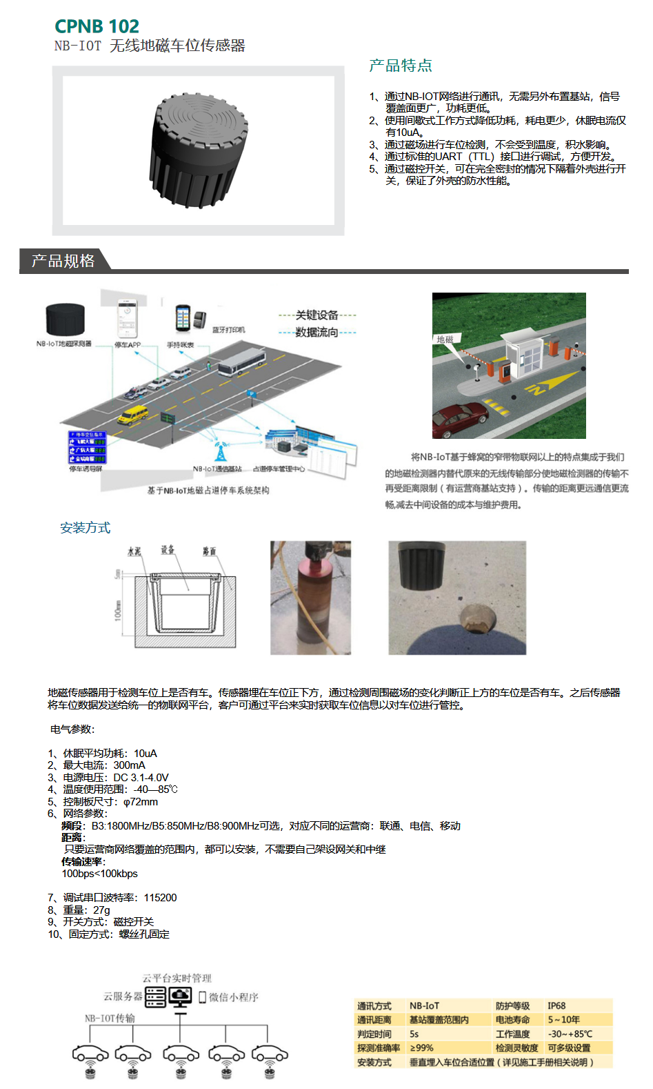 CPNB102 NB-IOT无线地磁传感器